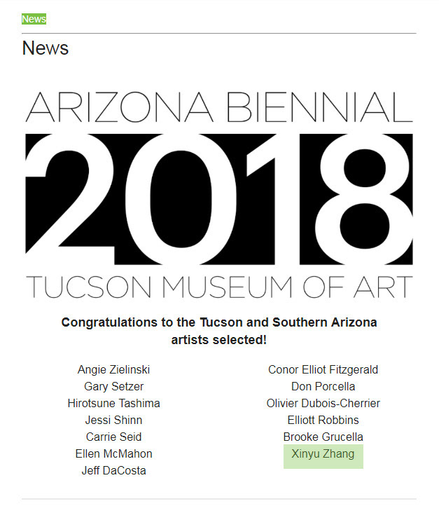 Solo exhibition, April 20 -Aug.11, 2019, the University of Arizona Museum of Art.
