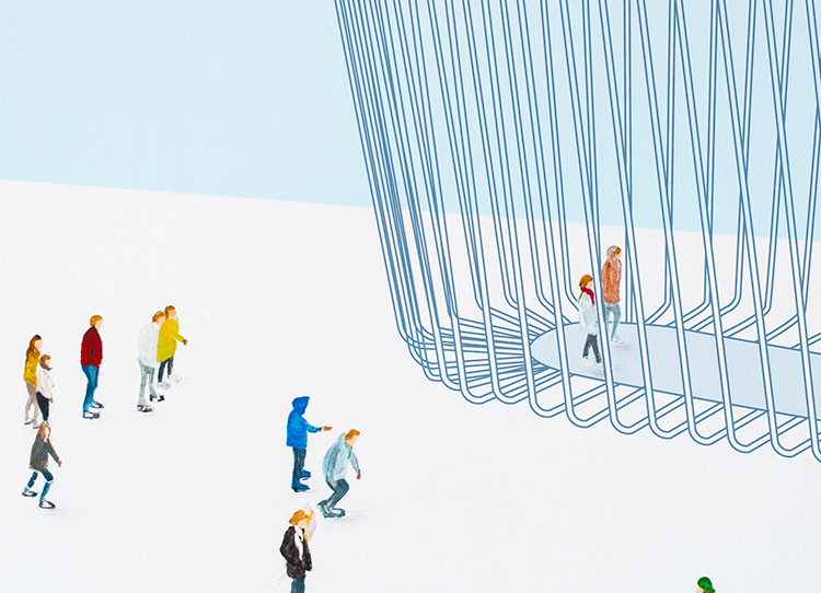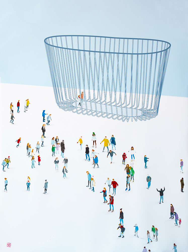 Basket, 40 by 30 inches, mixed media on canvas – acrylic paints and CGI digital
