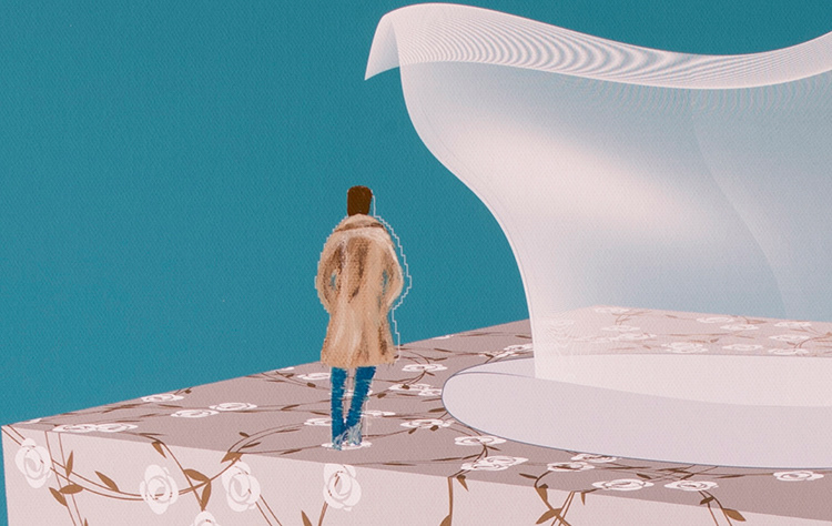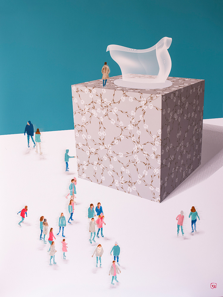 Tissue, 40 by 30 inches, mixed media on canvas – acrylic paints and CGI digital