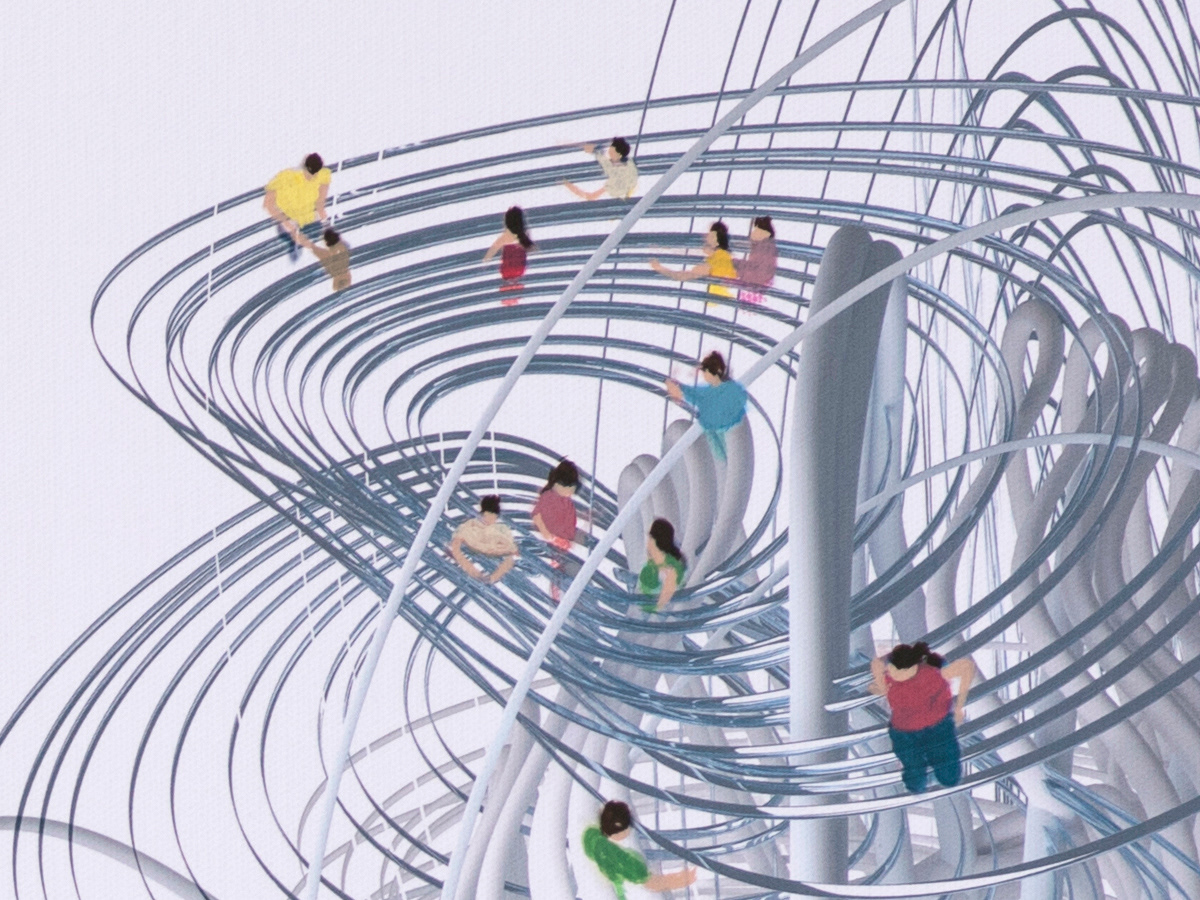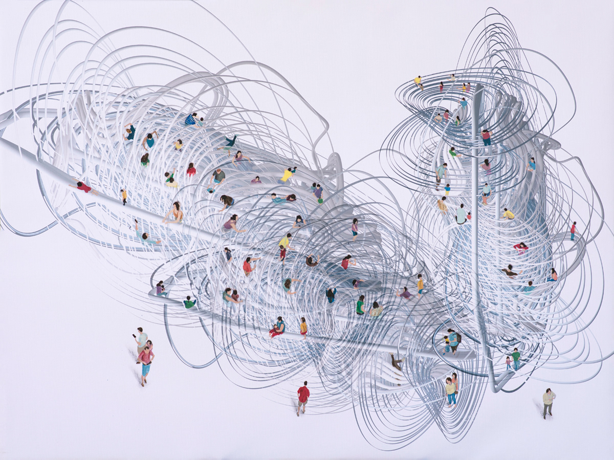 Wander Around #3, 40 by 30 inches, mixed media on canvas – acrylic paints and CGI digital