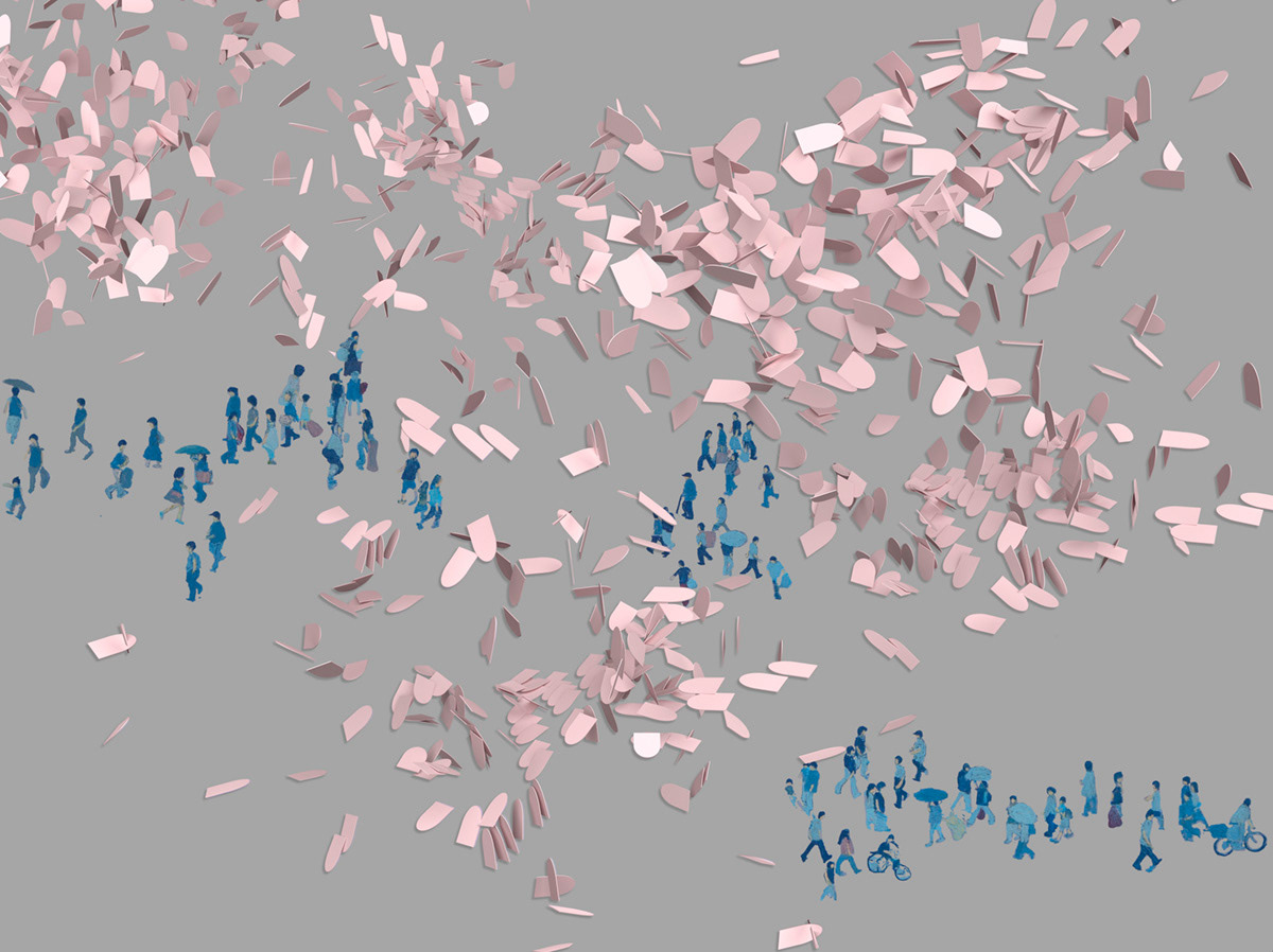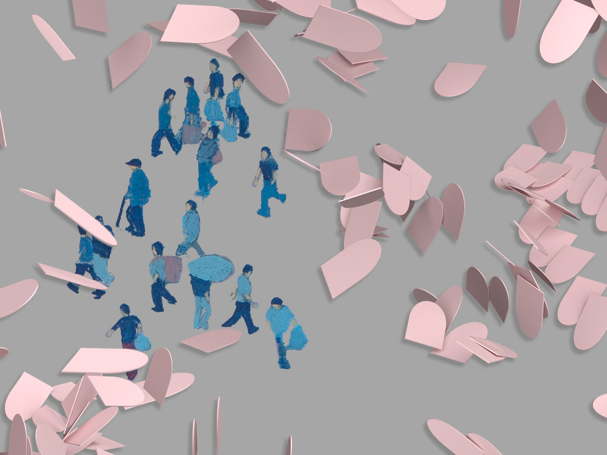 Wander Around #6, 40 by 30 inches, mixed media on canvas – acrylic paints and CGI digital