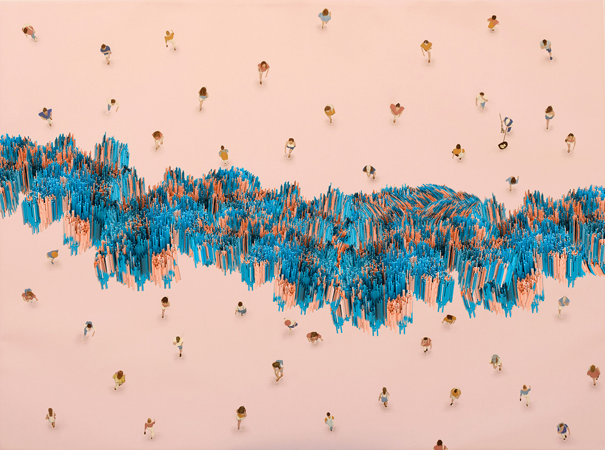 Wander Around #9, 40 by 30 inches, mixed media on canvas – acrylic paints, photos and CGI digital