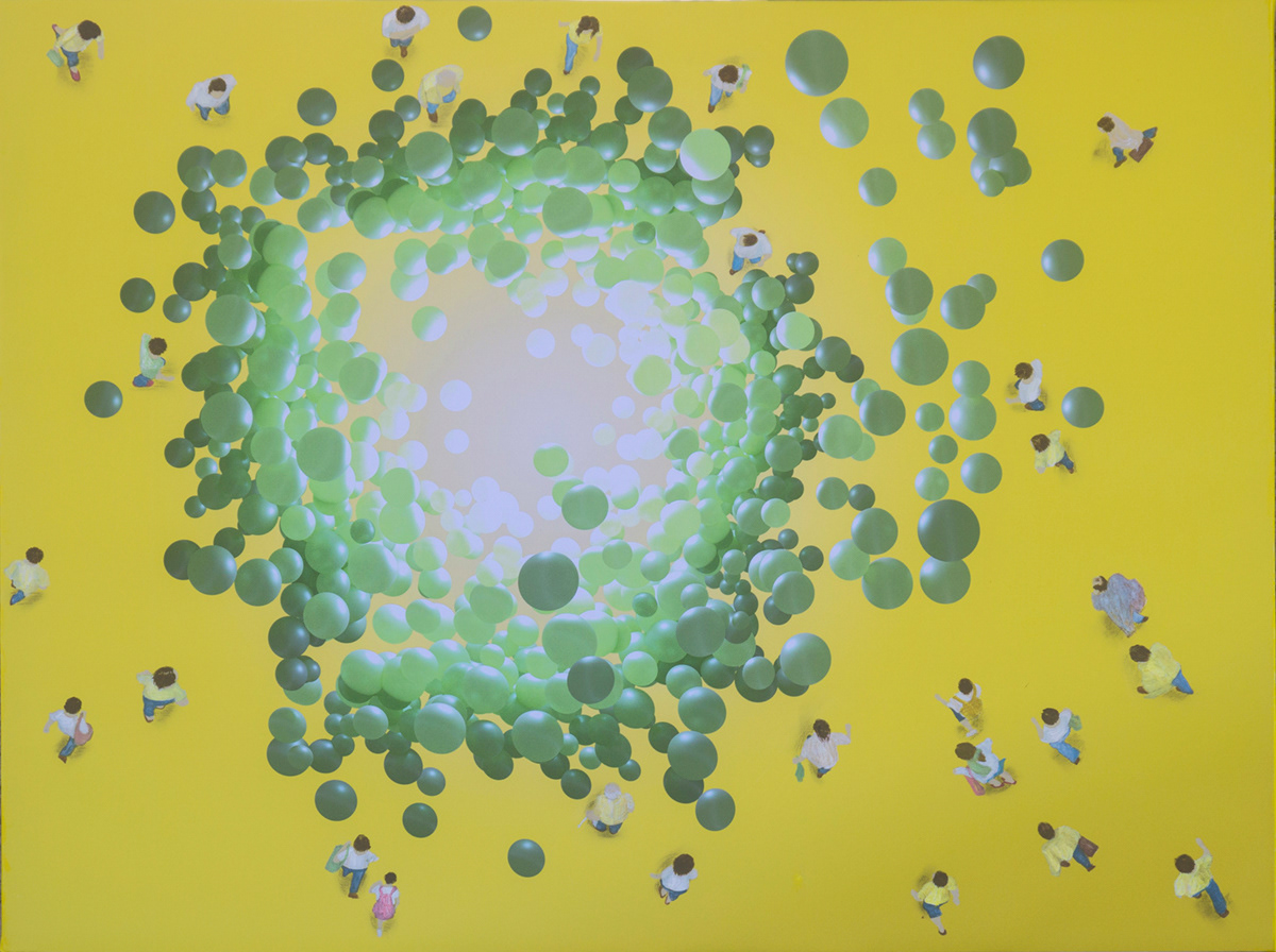 Wander Around #5, 40 by 30 inches, mixed media on canvas – acrylic paints and CGI digital